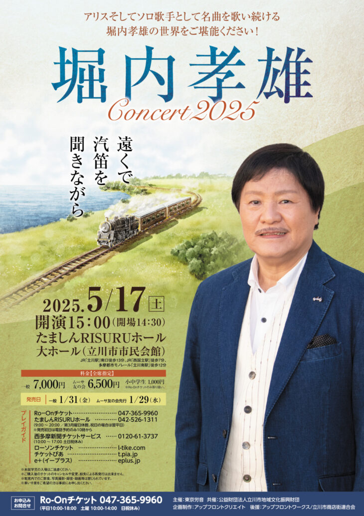 5/17(土) 15:00 開演(14:30 開場)たましんRISURUホール(立川市市民会館)大ホール料金(税込)全席指定 : 7,000円